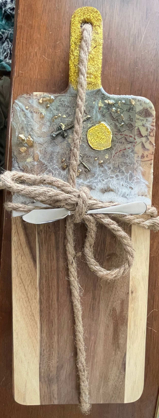 I hope you enjoy my variety of resin charcuterie boards. Most of my boards are created with the ocean in mind! Each board is one of a kind and made with food safe resin. You can use them to serve guests snacks and treats or you can display them as a decoration. I hope you enjoy my art as much as I do! I can take custom orders with different size boards and colors. If this is something you are interested in please email me at resinatmidnight.art.studio@gmail.com.