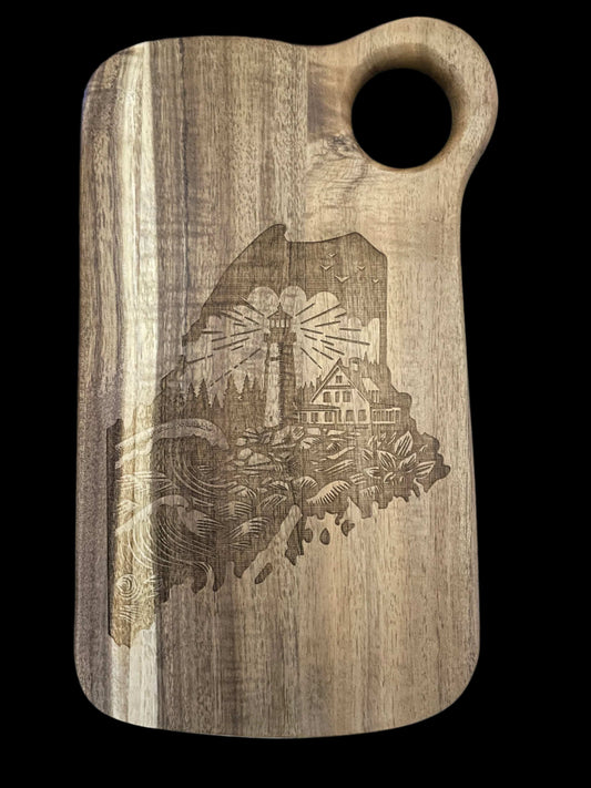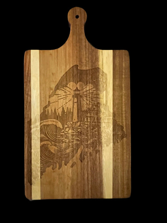 State of Maine laser engraved light house cutting board