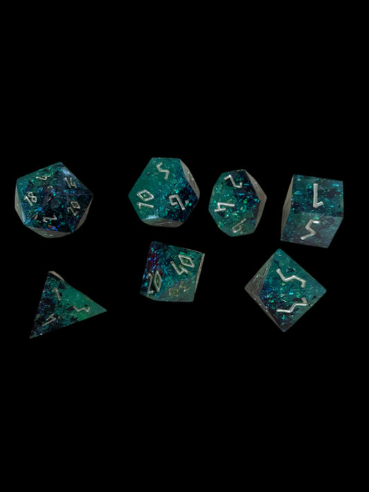 Handmade Role playing dice made of resin. These sets of dice were handmade, painted and polished. Several hours went into making these beautiful dice for the role playing enthusiast.