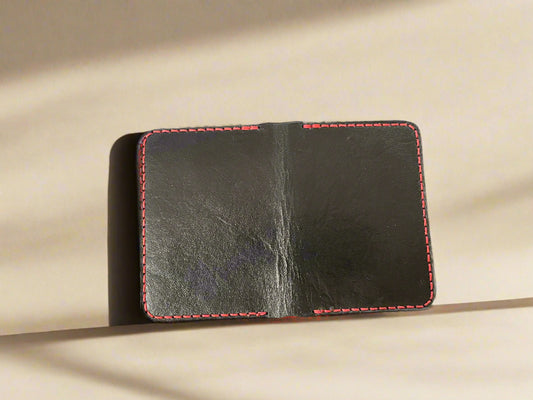 Handmade leather Wallet featuring a Raven ~ Black & Red